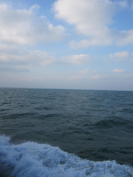 The boat was sailing upwind, so it was leaning a lot.