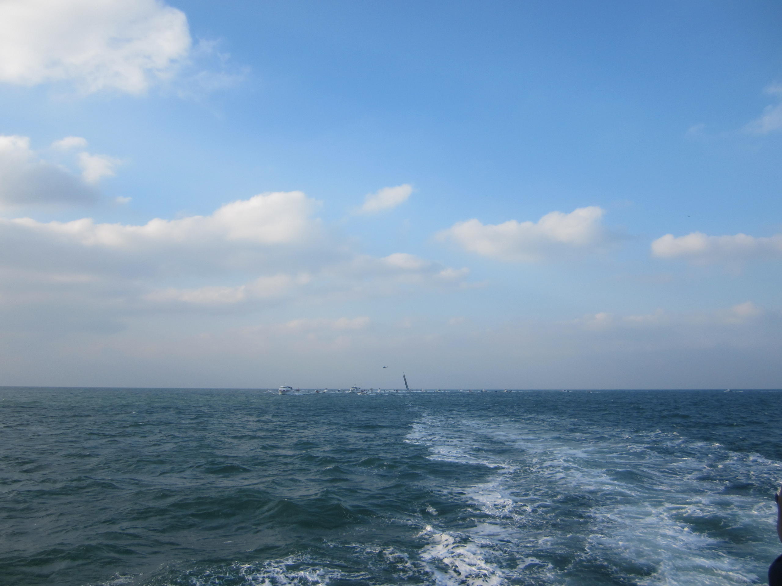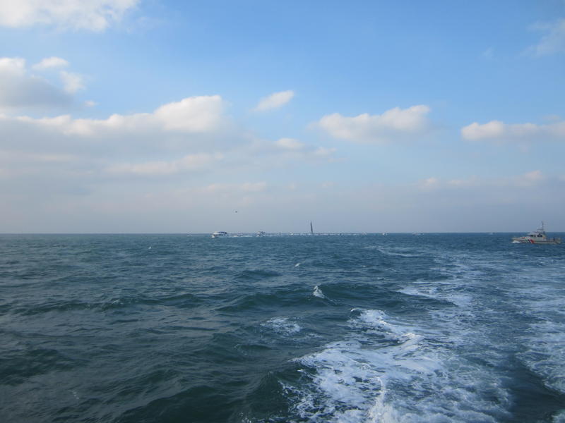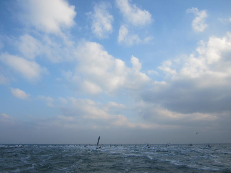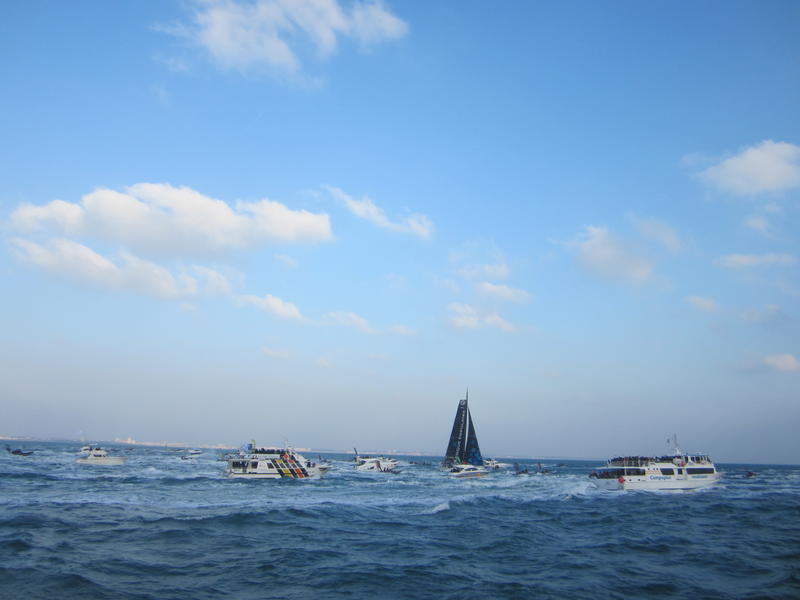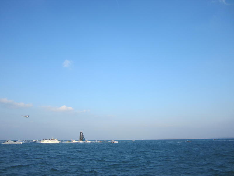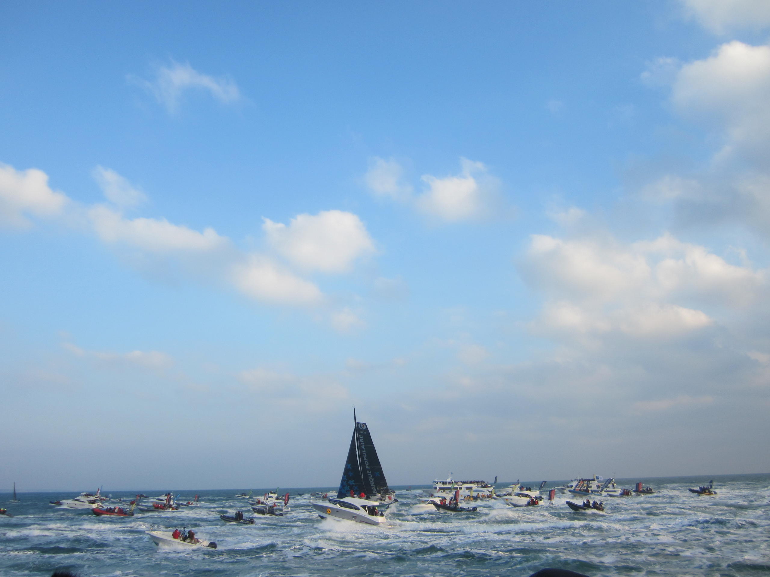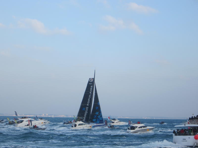 We left the harbor at 2.20p.m and we began to see the IMOCA Banque Populaire VIII after one hour of navigation.