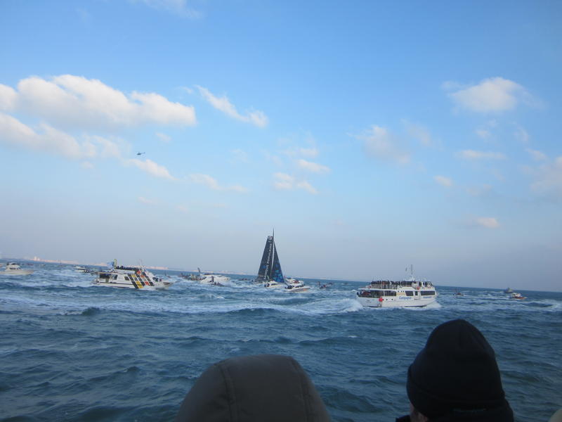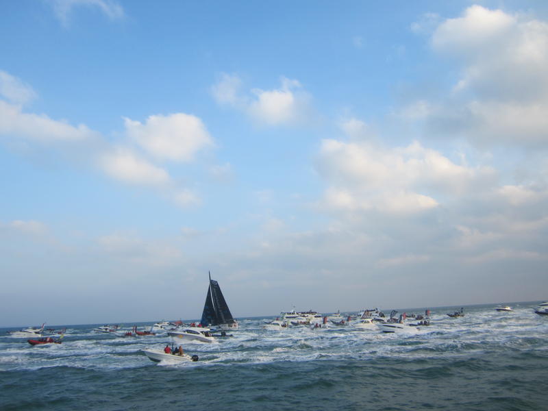 I had the chance to follow Armel Le Cléach arrival in Les Sables d'Olonne while he was crossing the line, winning the 8th Vendée Globe.